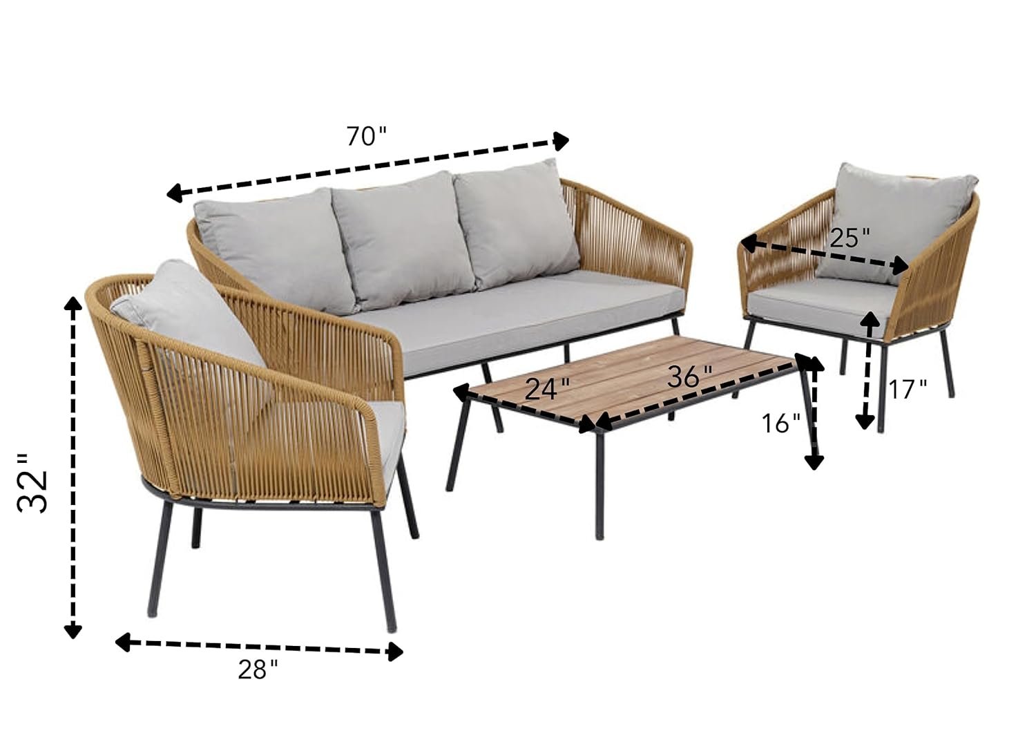 • 2 Single Seater Dimensions: 25″L × 28″W × 32″H