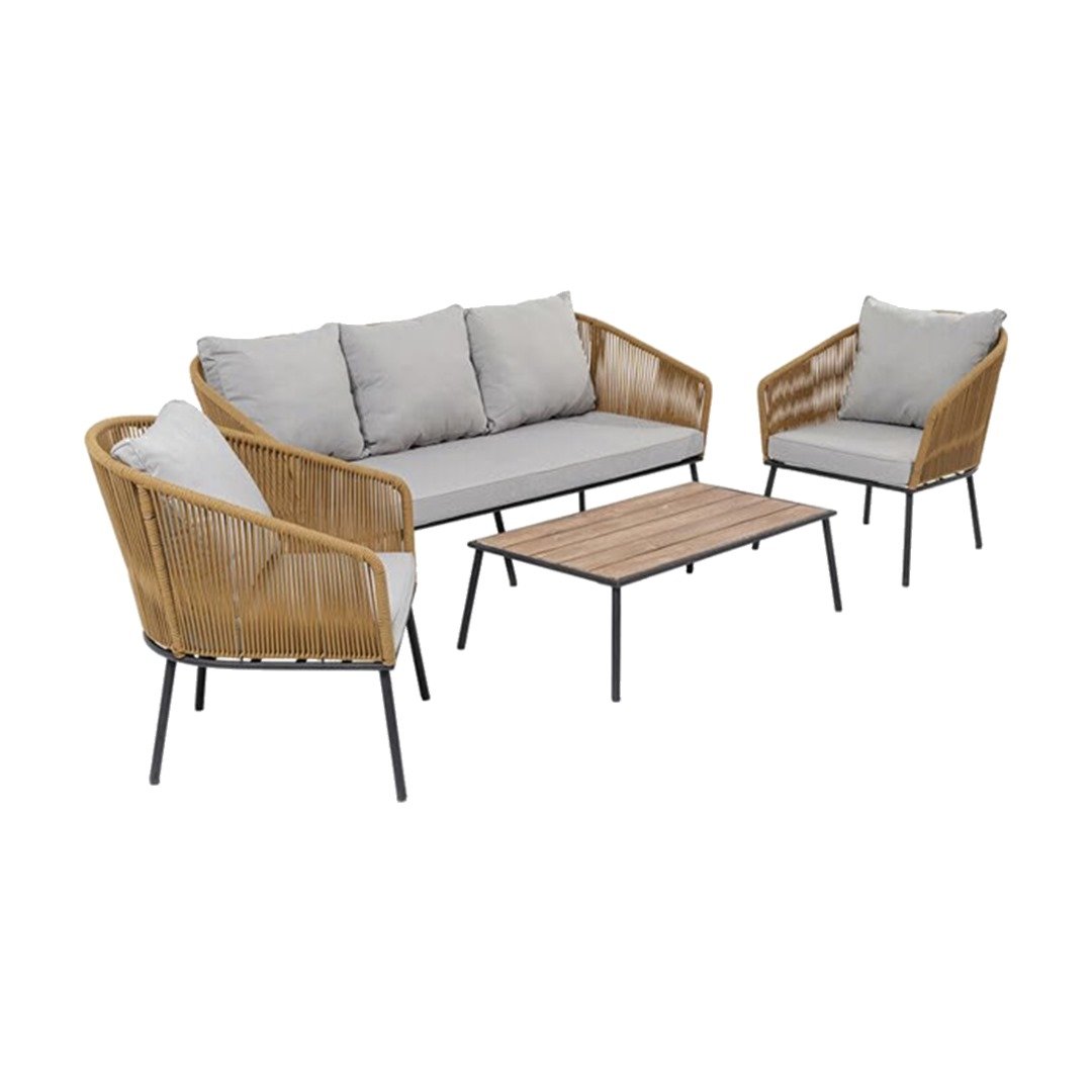 Bring contemporary design with natural materials to your outdoor space with our Nature Zone Collection. Complete with a three-seat sofa, two armchairs, and a coffee table, this set comes with everything you need to lounge with your family and guests on your backyard patio.