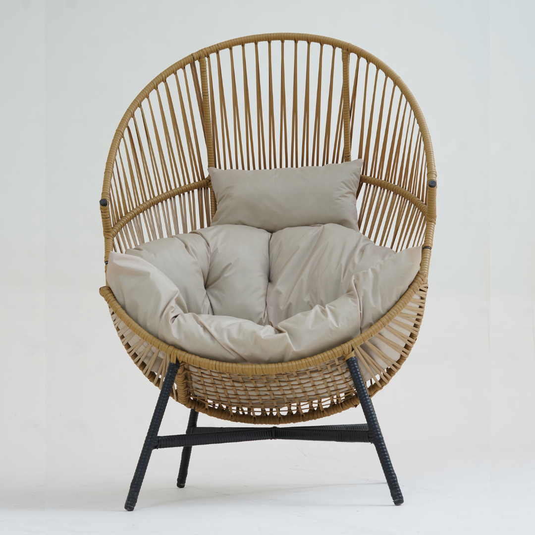 - Beautifully crafted with a sleek silhouette and plush cushions, this chair is ideal for relaxing in your garden, patio, or balcony.